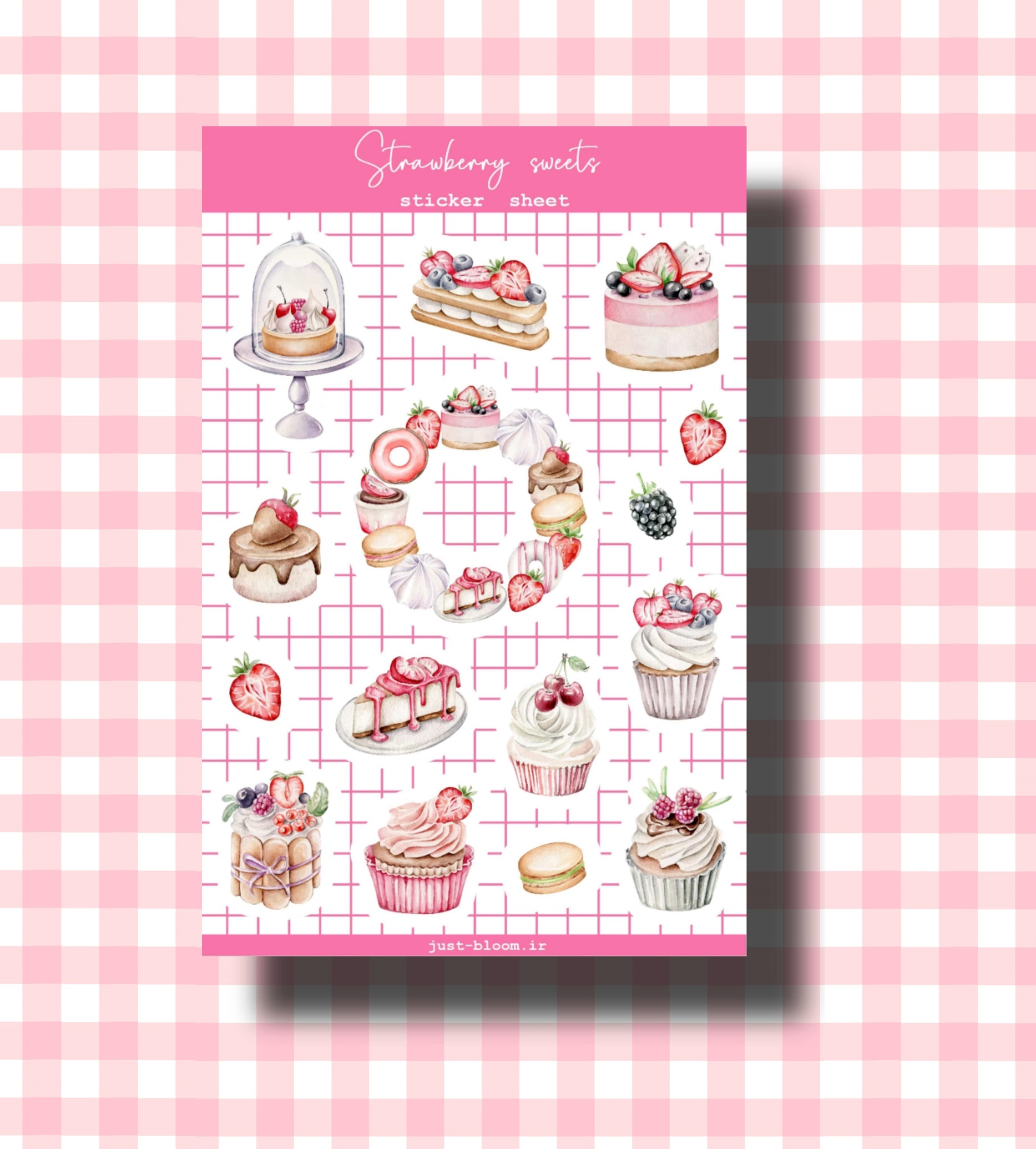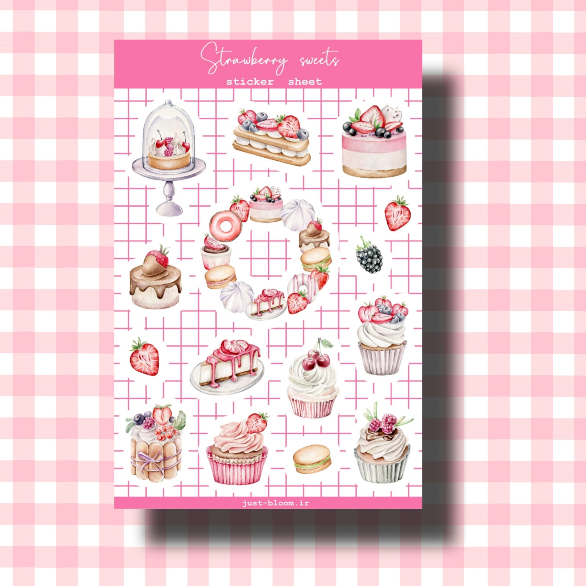 استیکر طرح شیرینی های توت فرنگی