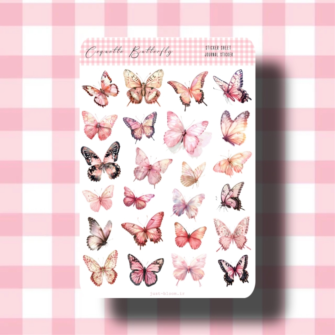 استیکر با طرحای پروانه های صورتی