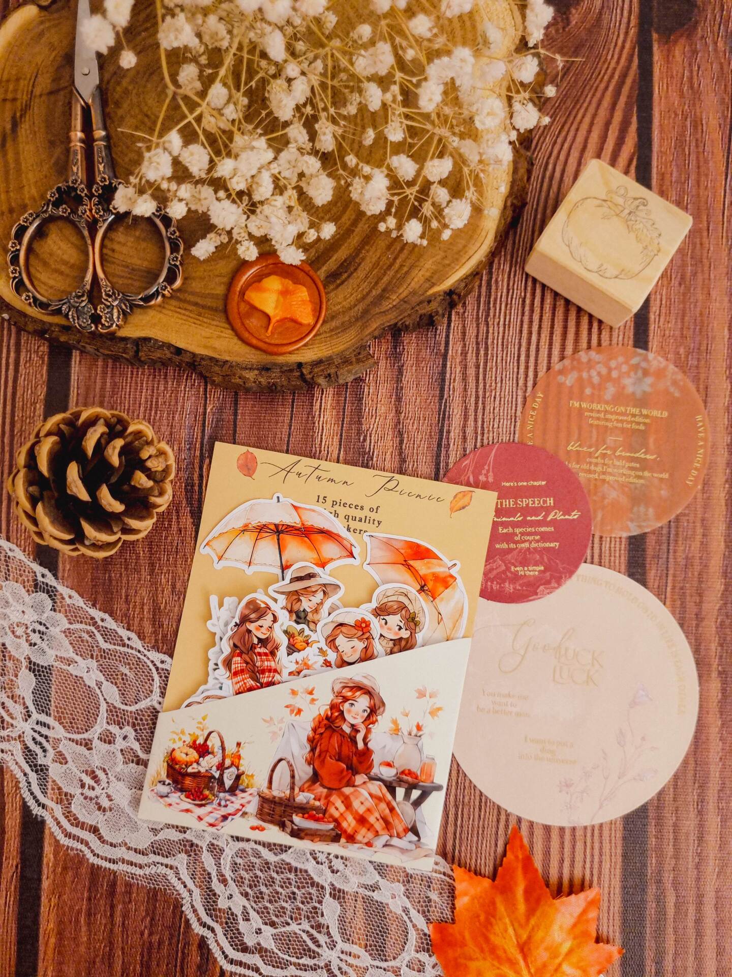پک 15 عددی استیکرهای گلاسه با طرح های پاییزی
