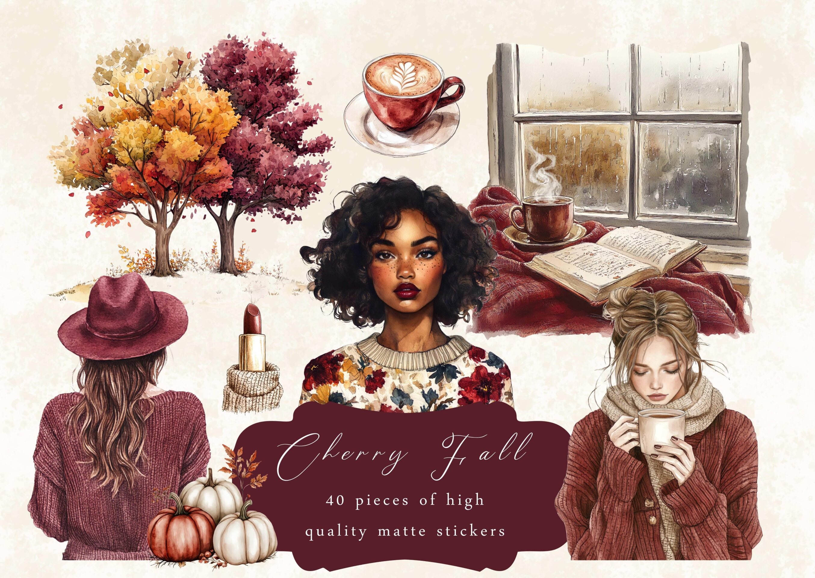 استیکرهای پاییزی با تم آلبالویی جذاب