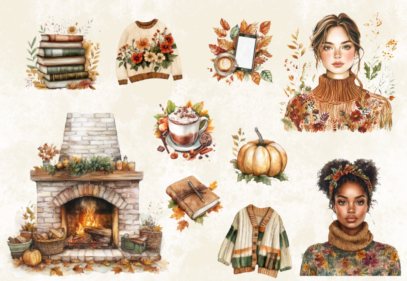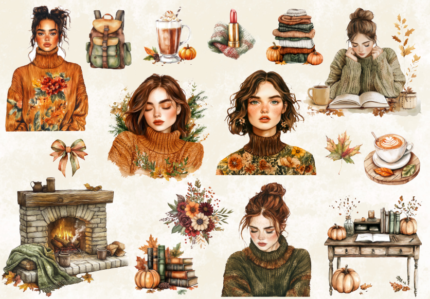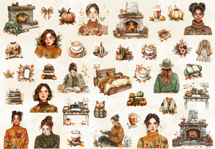 پک استیکر نیمه براق با تم پاییزی