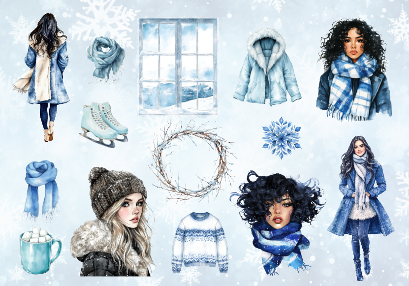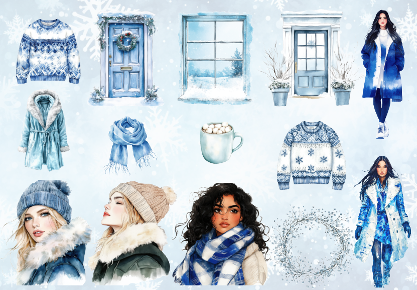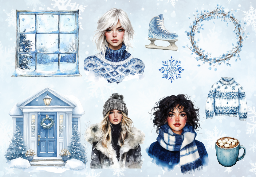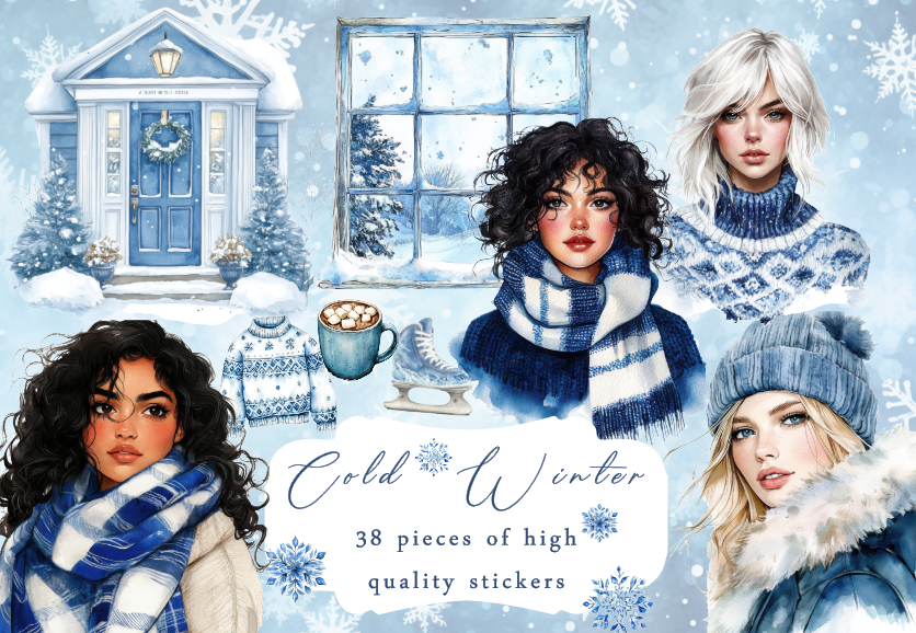 پک استیکر کاغذی و نیمه براق با تم زمستان سرد و آبی