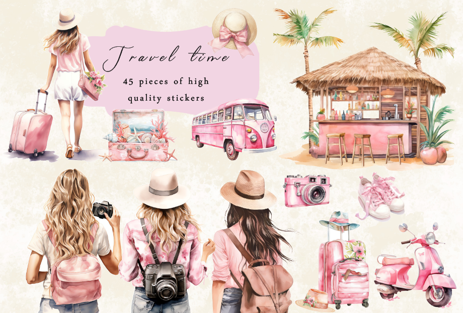 پک استیکر های فانتزی کاغذی با تم مسافرت