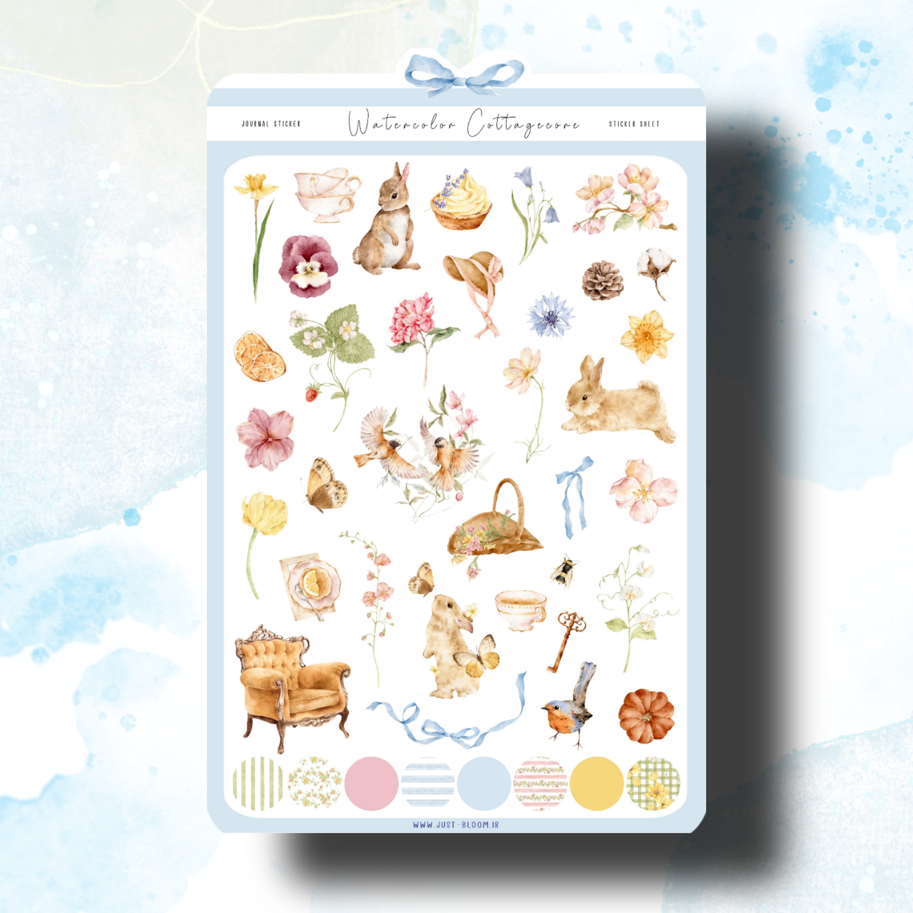 استیکر با طرح های آبرنگی مزرعه ای آبی